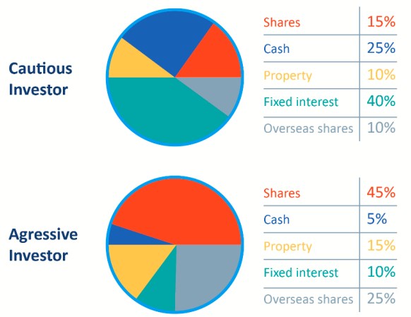 Within your investment strategy you need to work out what proportion of your total capital you should invest in shares, property, fixed interest and cash. This is called asset allocation.