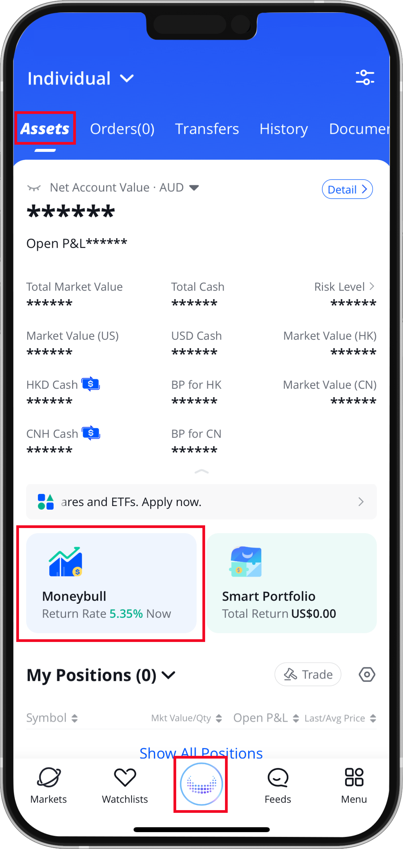 Entrance 2. Update your Webull app to version 9.2.6 and go to Account Page > Assets >Cash Management Banner